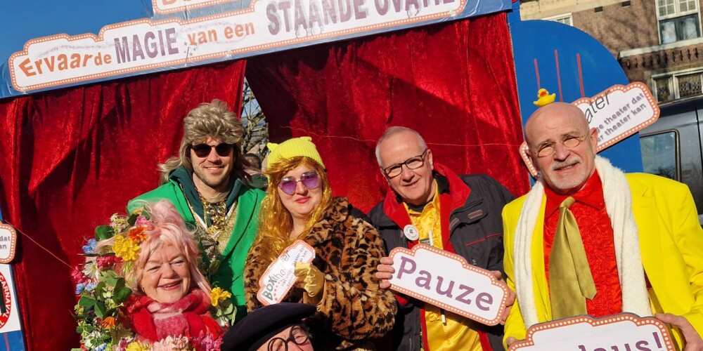 De spontane loopgroep ‘Nie Verwacht Toch Gekome’, die bestond uit deelnemers van meerdere lokale carnavalsverenigingen, viel op met een act waarin de zoektocht naar een nieuwe theaterzaal heel letterlijk werd genomen.